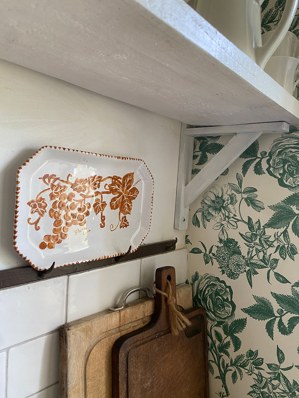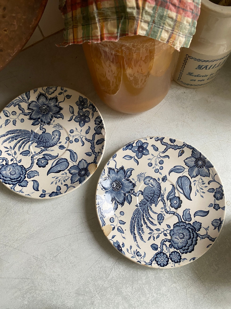 Plat à gateau sur petit pied, céramique, décor floral. Frabrication française, Moulin des Loups.
